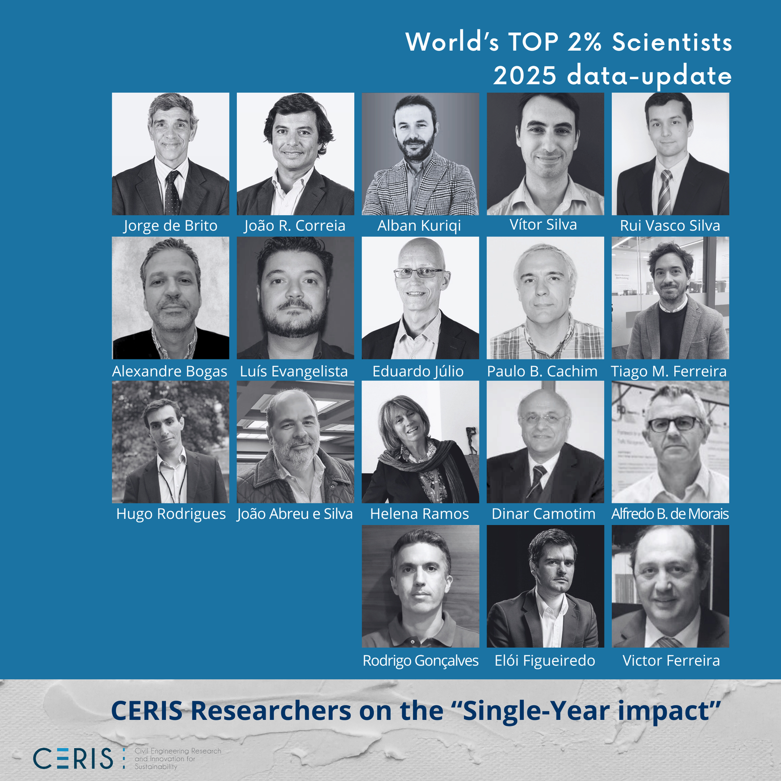 Stanford University (California, USA), in collaboration with Elsevier, has released its latest update of the world’s top 2% most cited scientists. The new edition highlights several researchers from CERIS, underlining the impact and global visibility of the institution’s scientific work.